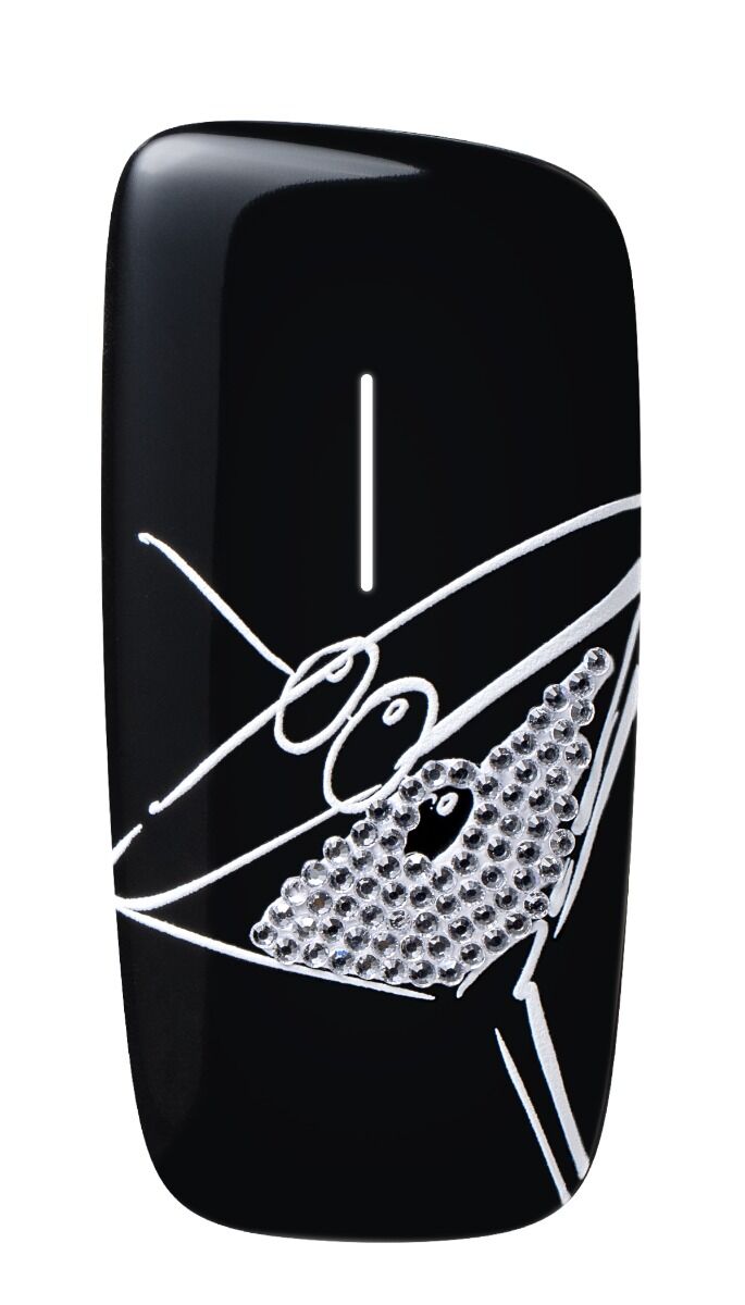This features a sleek martini glass, finished with sparkling rhinestones.