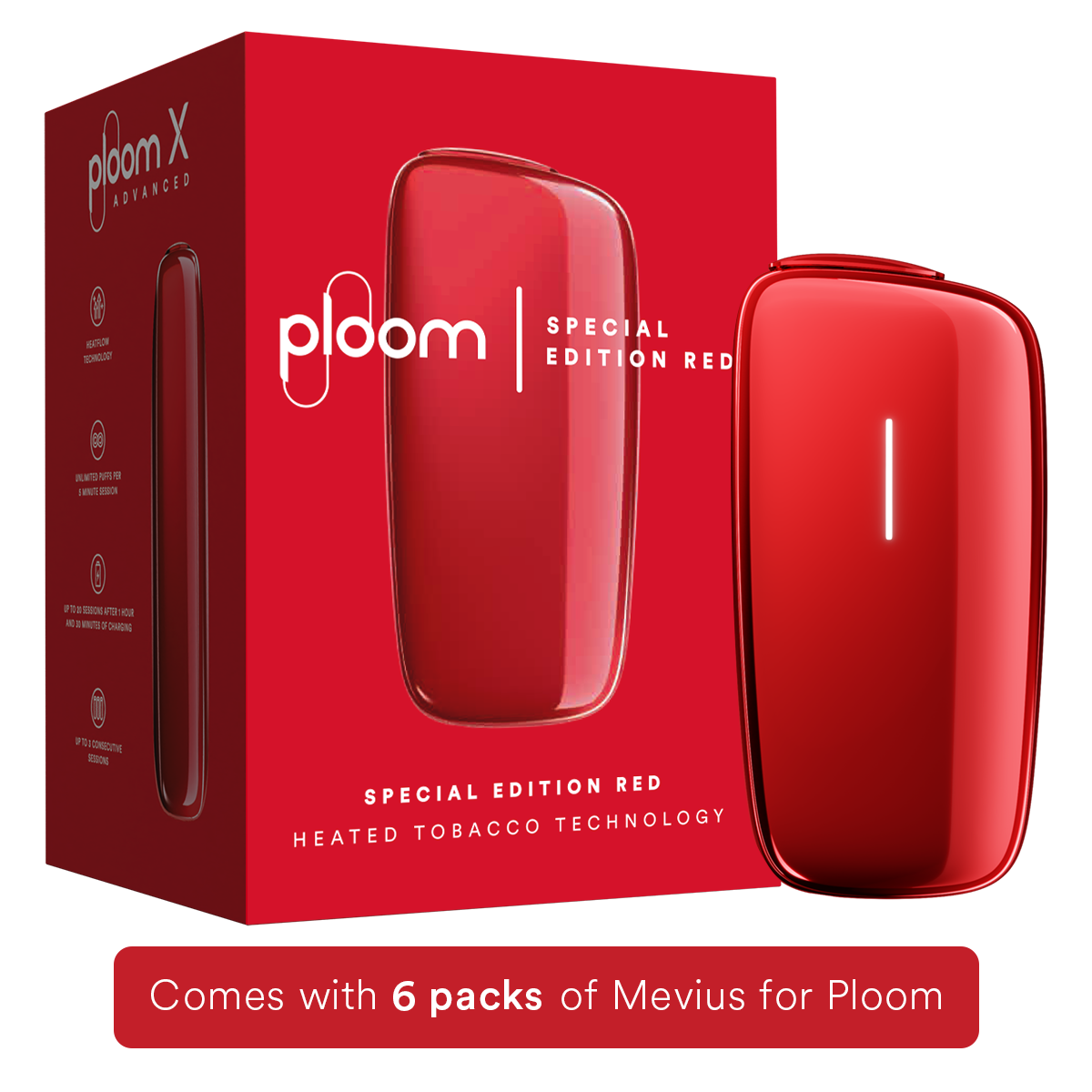 1 x Ploom X Advanced device, 4 x packs of Mevius for Ploom heated tobacco sticks (Deep Aroma Rich, Deep Rich, Smooth Regular, Purple Option), 1 wall adaptor, 1 USB cable, 1 set of cleaning ...